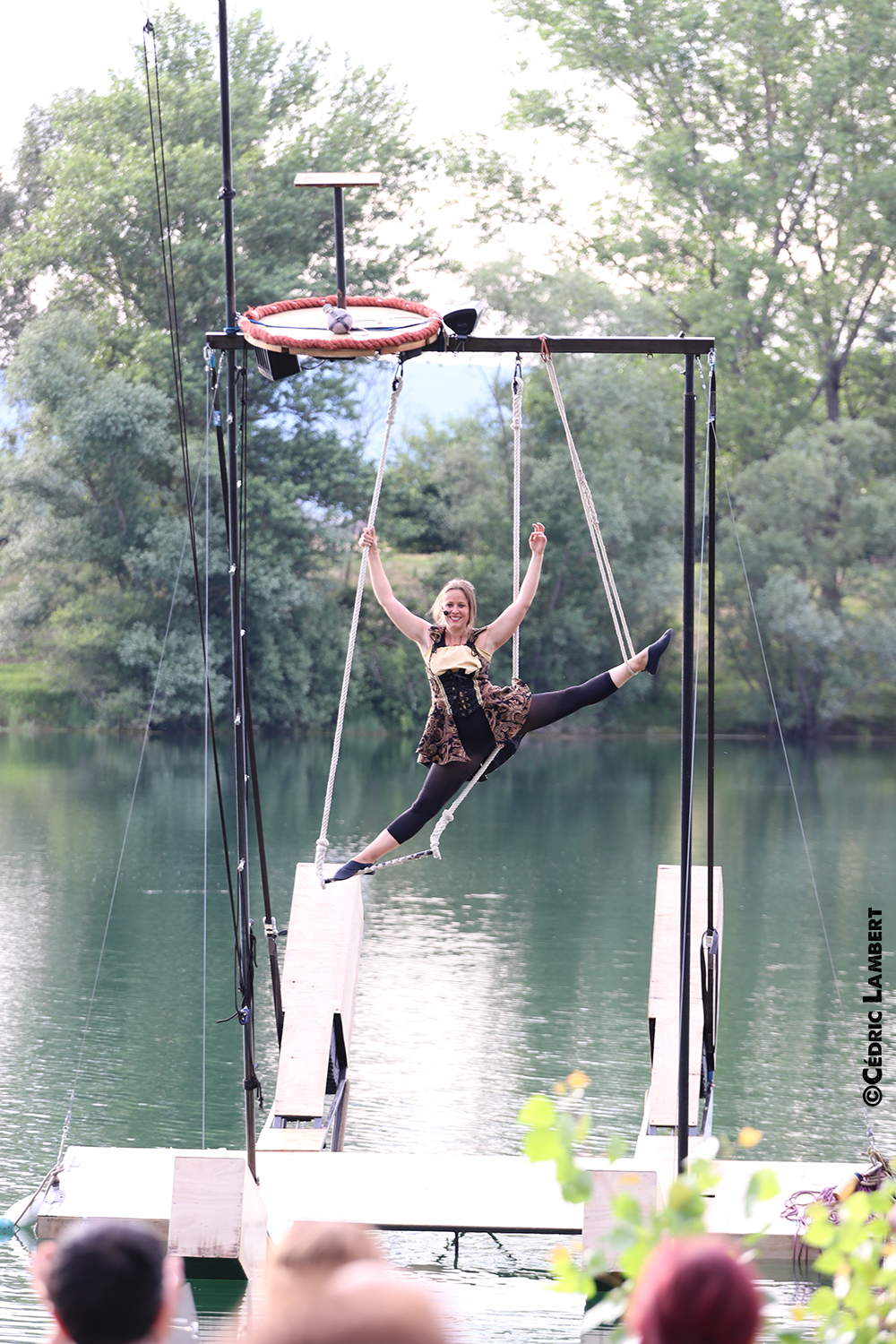 Tout a commencé autour d'un cappuccino sur une aire d'autoroute durant la tournée 2020, je confiais à Piem, notre régisseur général, mon envie de suspendre un trapèze au-dessus de l'eau. Tout de suite séduit par le défi de la construction, il fut partant. Faisant ainsi germer dans ma tête l'idée d'un nouveau spectacle.