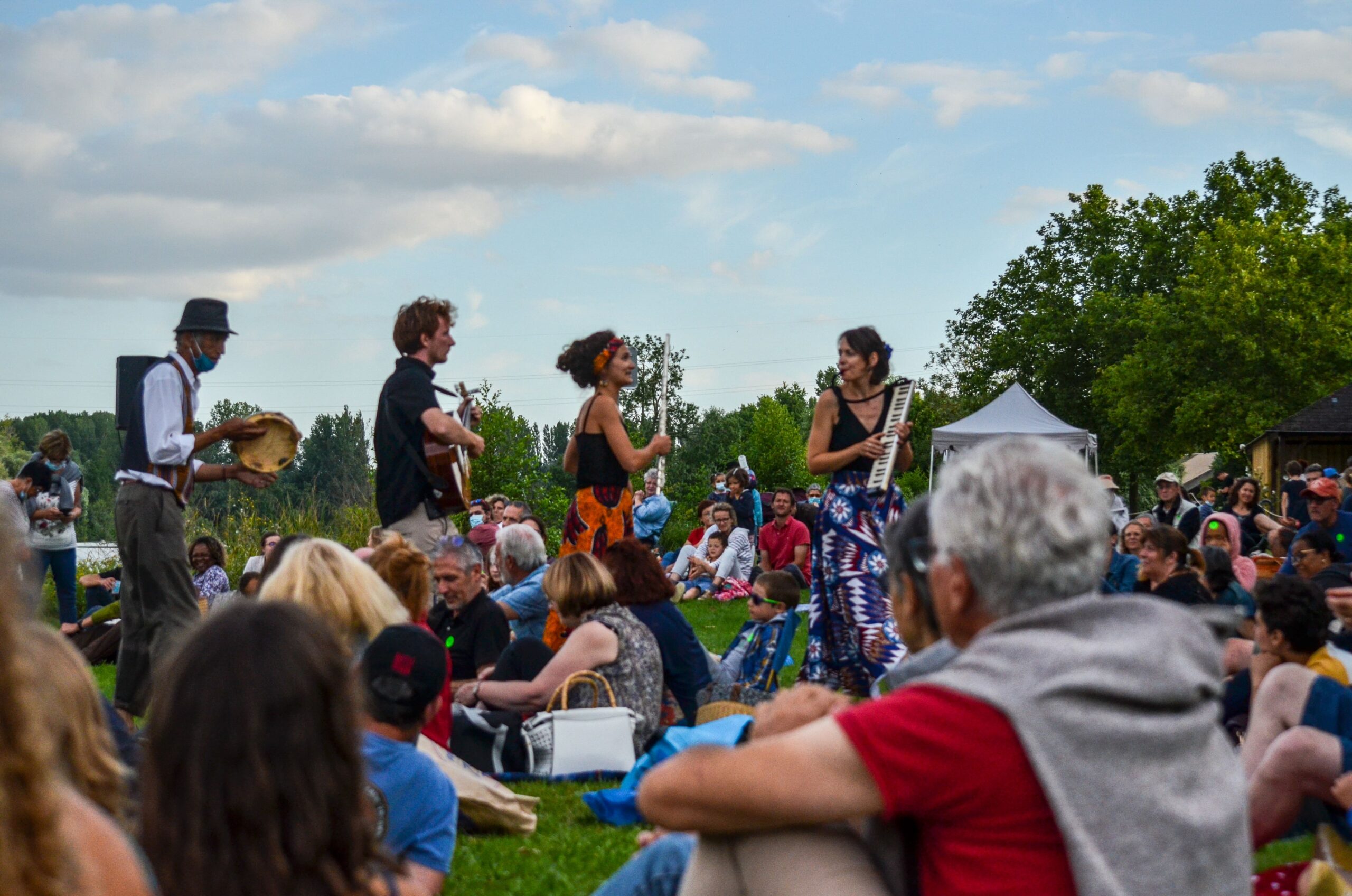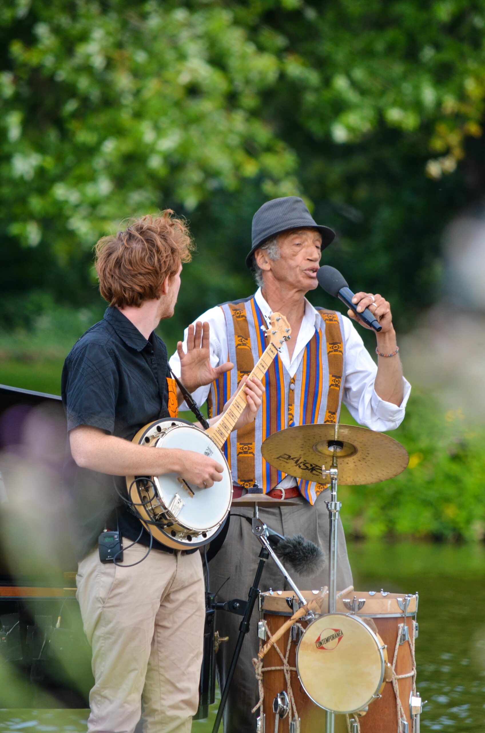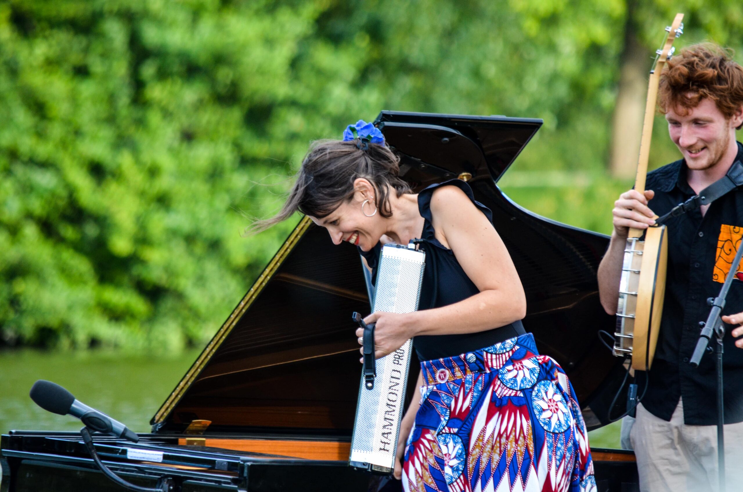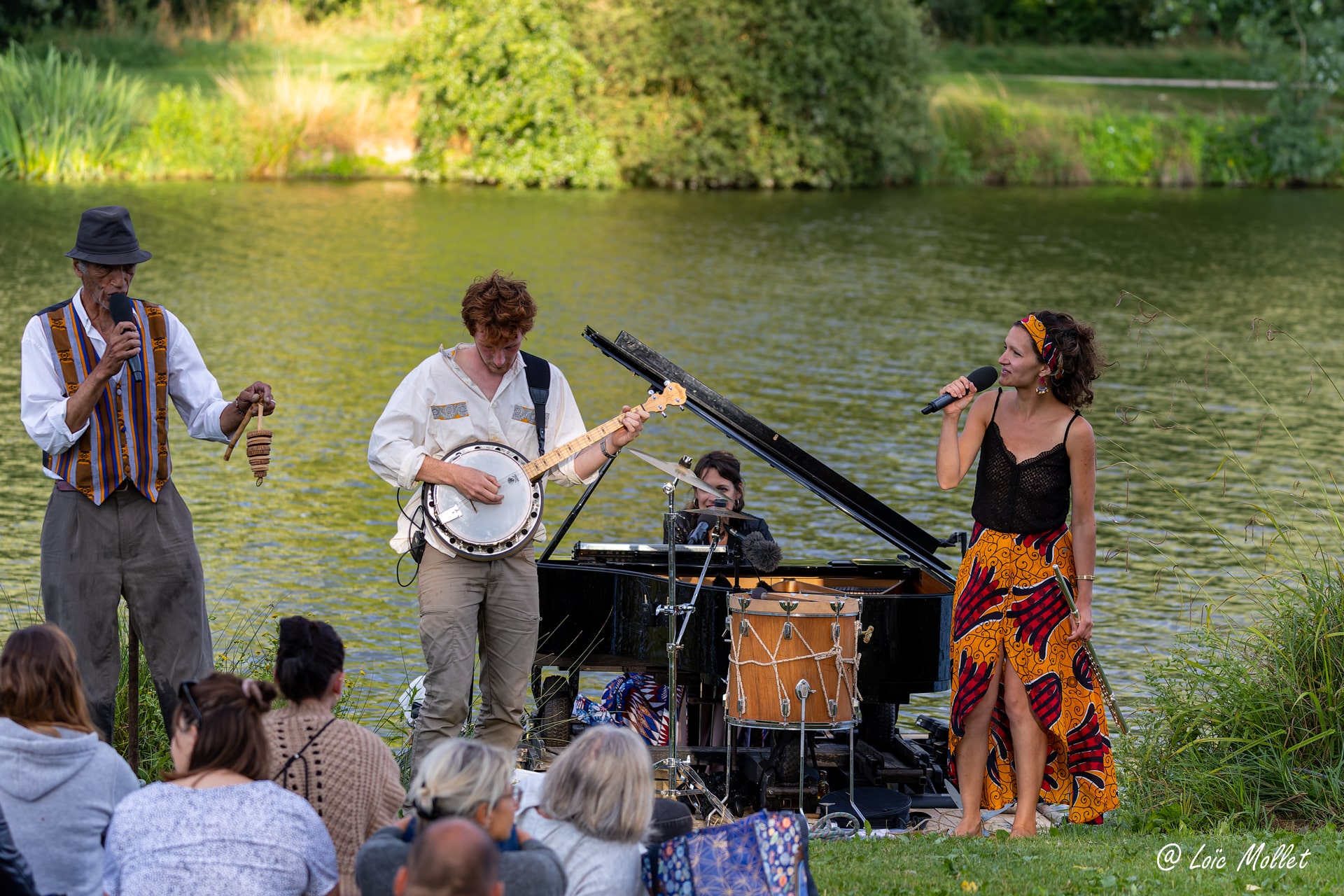 Piano, chant, flute traversière, percussions, banjo, guitare